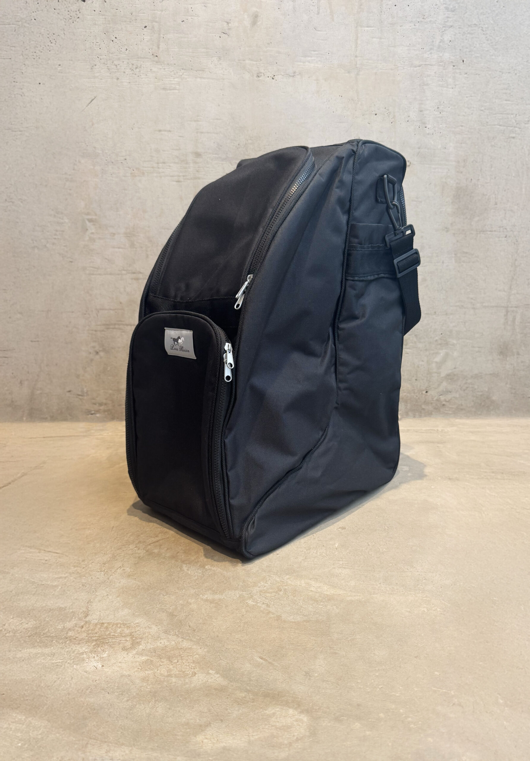 Diseñado para acompañarte a cada concurso y entrenamiento, este bolso combina practicidad, resistencia y el estilo único de Loca Pasión.