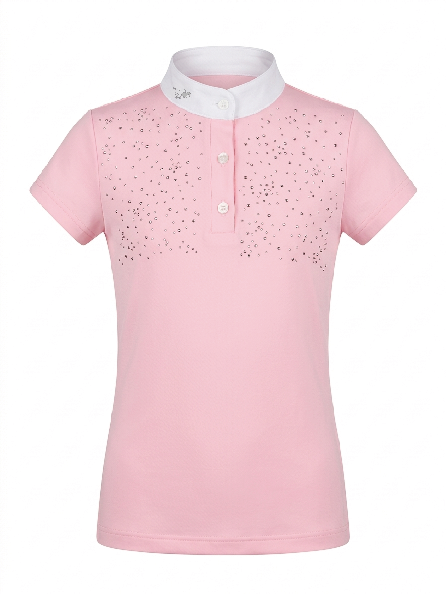 Chomba reglamentaria de concurso mangas cortas, confeccionada en textil dry fit combinado con textil dry fit calado en sus mangas, por su composición con elastano brinda mayor confort y comodidad para el deporte.