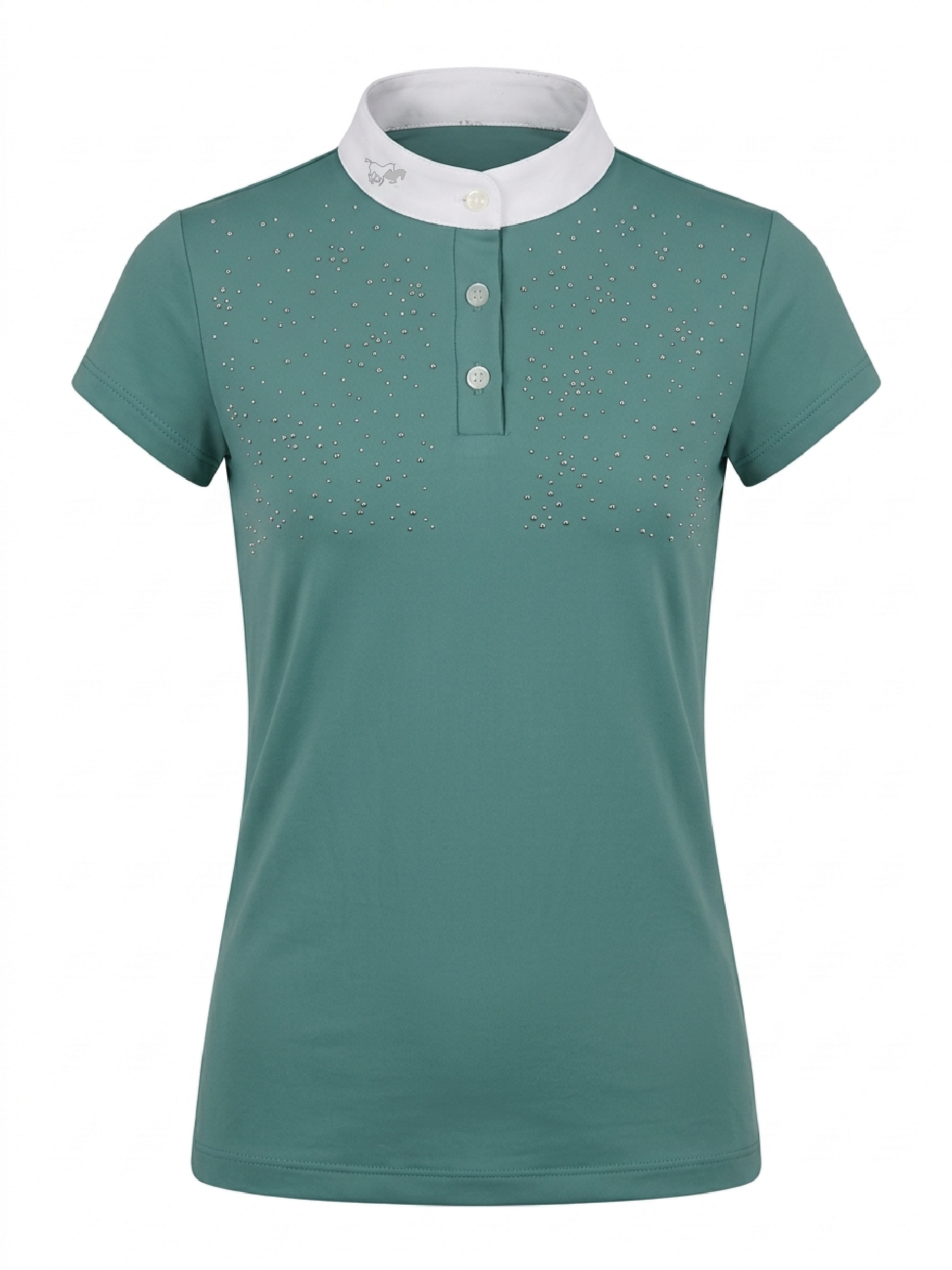 La chomba de concurso Cassie Shine para niña combina elegancia y comodidad para brillar en la pista. Está confeccionada en textil técnico con protección UV, un material liviano, suave y respirable que acompaña el movimiento durante toda la jornada.