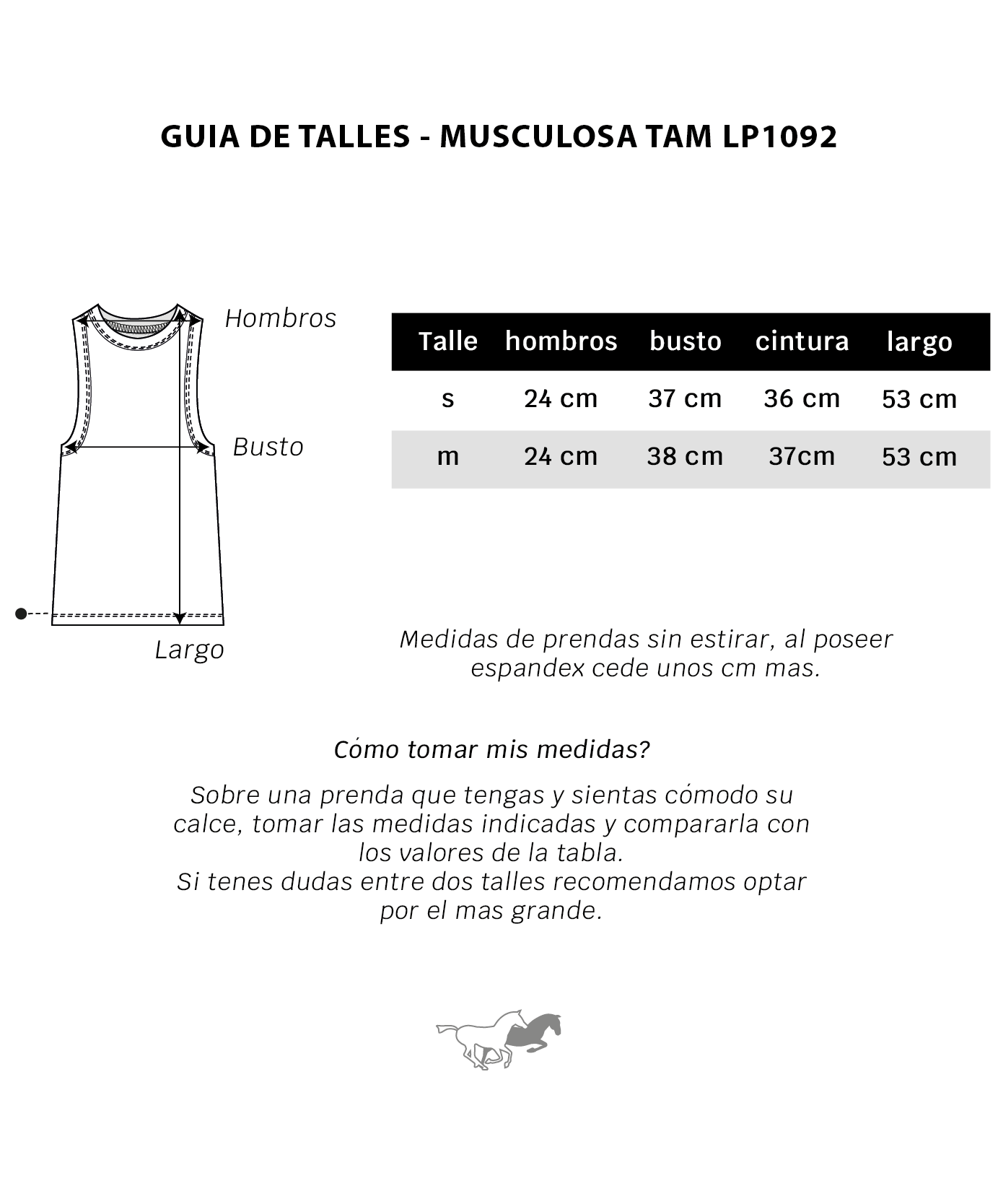 La musculosa Tam está confeccionada en ribb de algodón, un tejido cómodo y elastizado que se adapta al cuerpo y acompaña el movimiento durante todo el día.